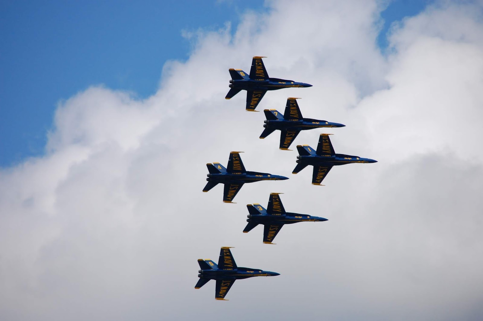 The first photo, a Lockheed C-130 Hercules, is named "Fat Albert" and provides logistical support to the planes and crews of the Blue Angels.